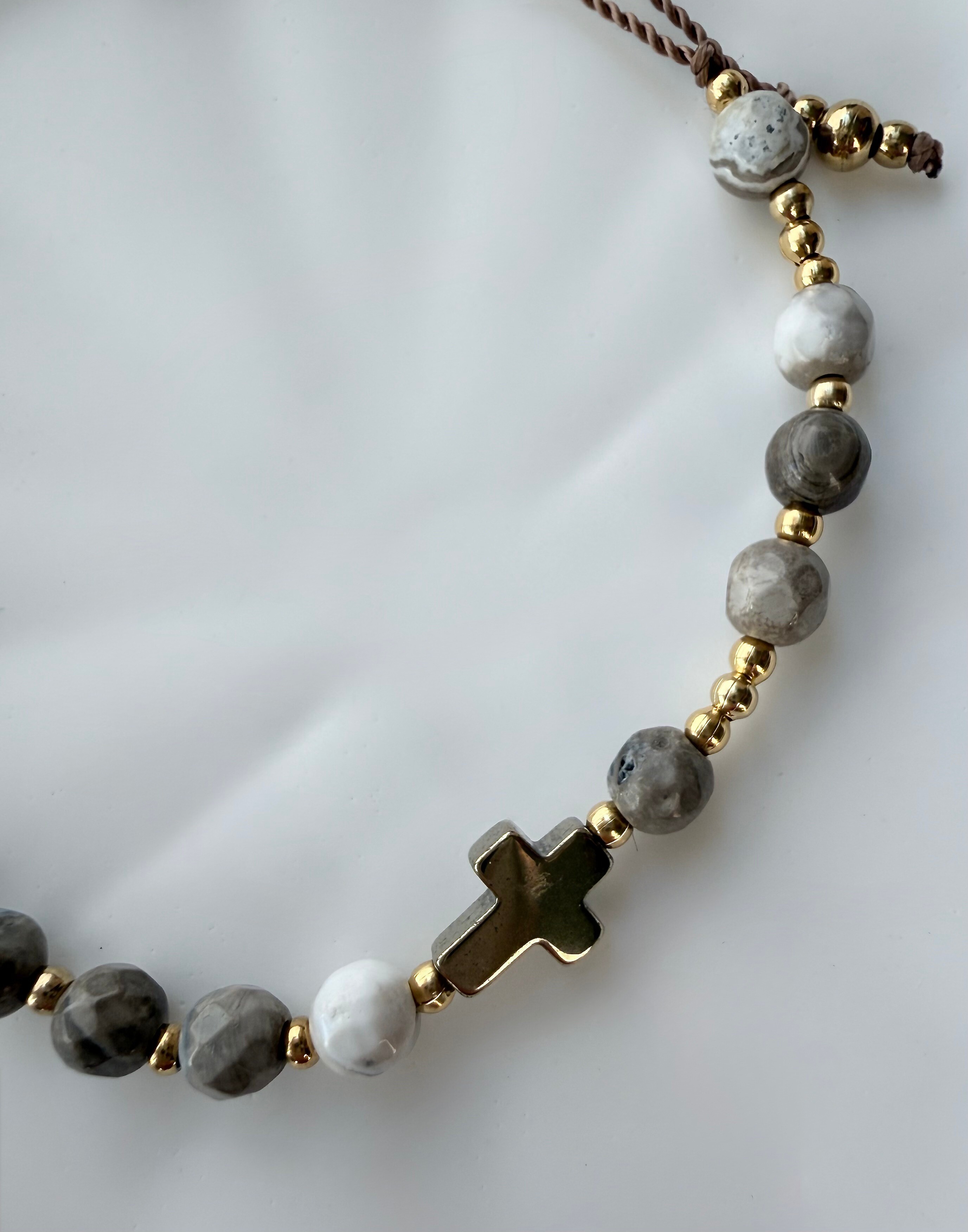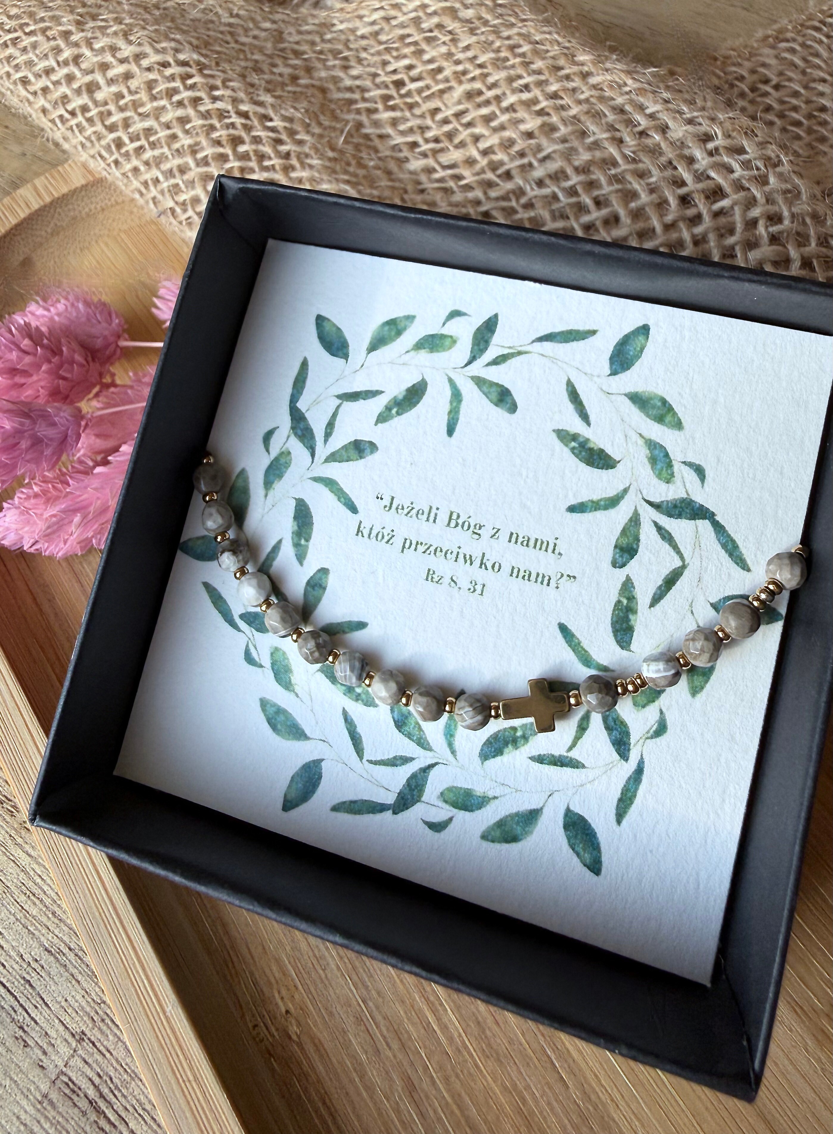 Nazwałam ten różaniec: "Ciepło Domu", bo jego barwy przypominają to, co w życiu daje nam poczucie bezpieczeństwa – aromatyczną kawę o poranku, drewniany stół, przy którym spotyka się rodzina. To bransoletka dla kobiet, które budują domowe ognisko. Agat w odcieniu cappuccino uspokaja rozbiegane myśli. Przypomina, że Bóg jest obecny nie tylko w kościele, ale też przy gotowaniu obiadu i tuleniu dzieci do snu.