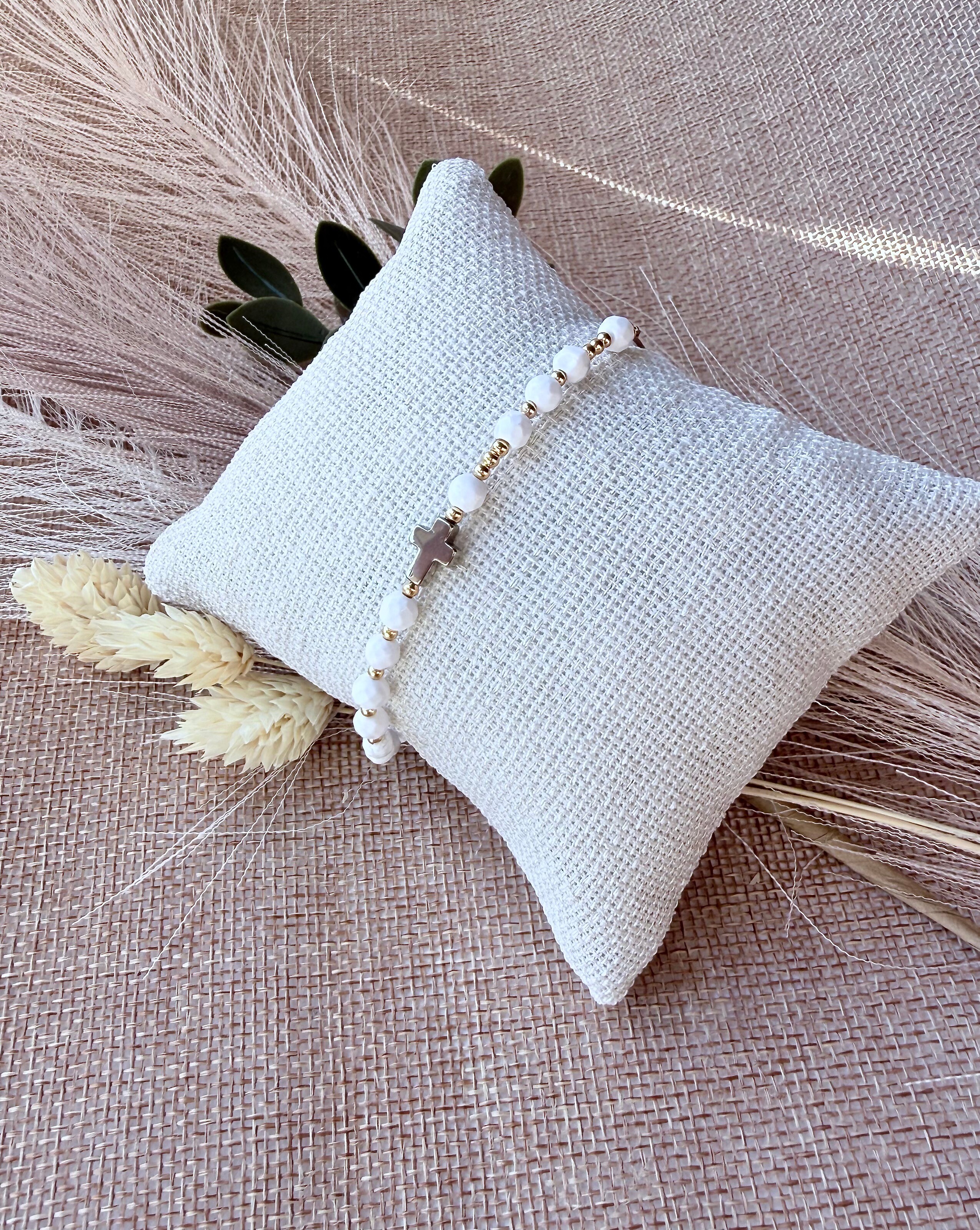 Bransoletka na trwałej nici jubilerskiej. Posiada wygodne zapięcie w formie stopera (koralik ze stali z silikonem), dzięki czemu idealnie dopasujesz ją do obwodu nadgarstka, bez uciskania.