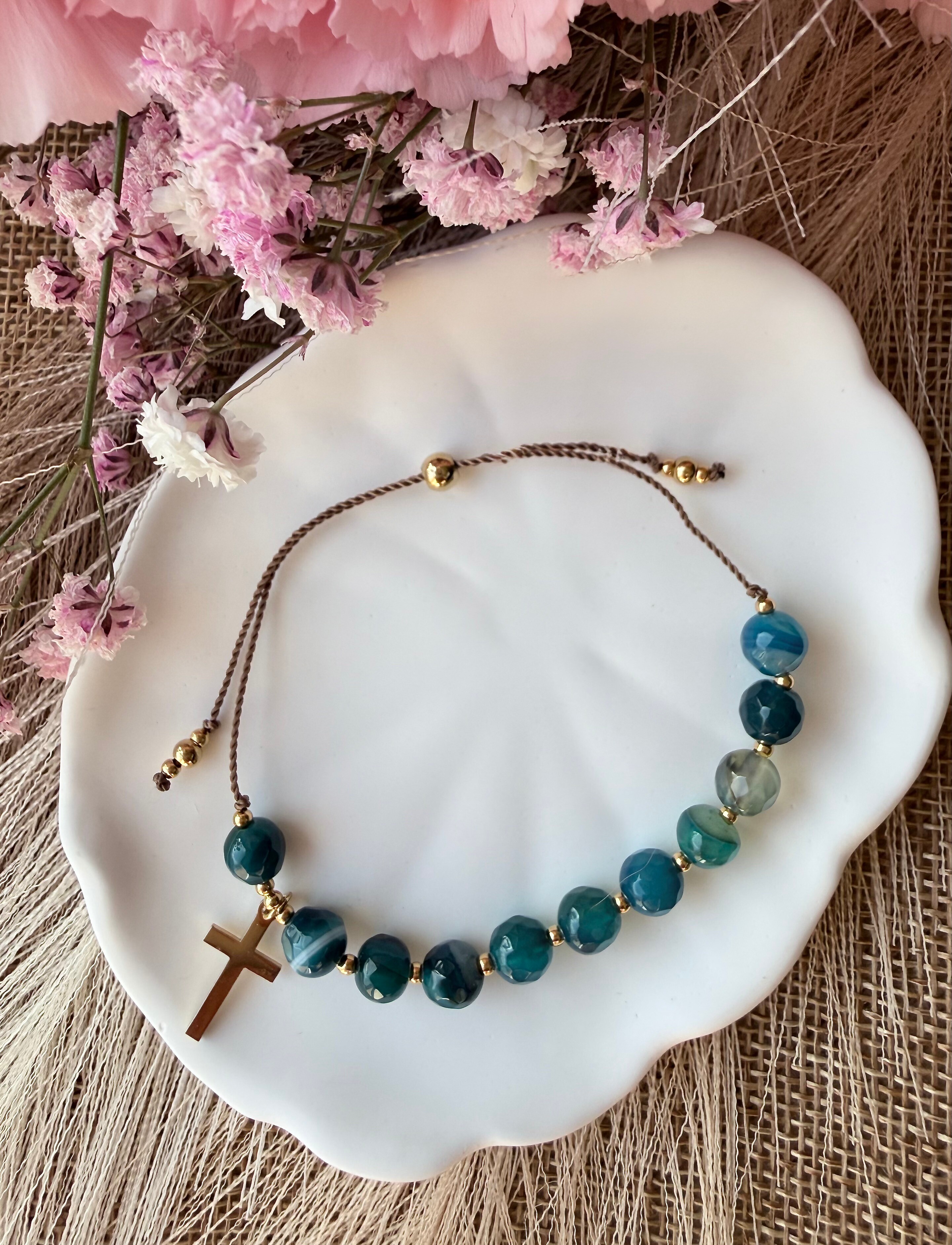 Naturalne ślady czasu: Pamiętaj, że biżuteria noszona blisko ciała (szczególnie na dłoniach) "żyje" razem z Tobą. Naturalne ścieranie się kamieni, matowienie czy delikatne rysy wynikające z codziennego użytkowania są naturalnym procesem i cechą tych materiałów, a nie ich wadą (w związku z tym nie podlegają reklamacji). Traktuj je jak piękne ślady Twojej codziennej modlitwy.