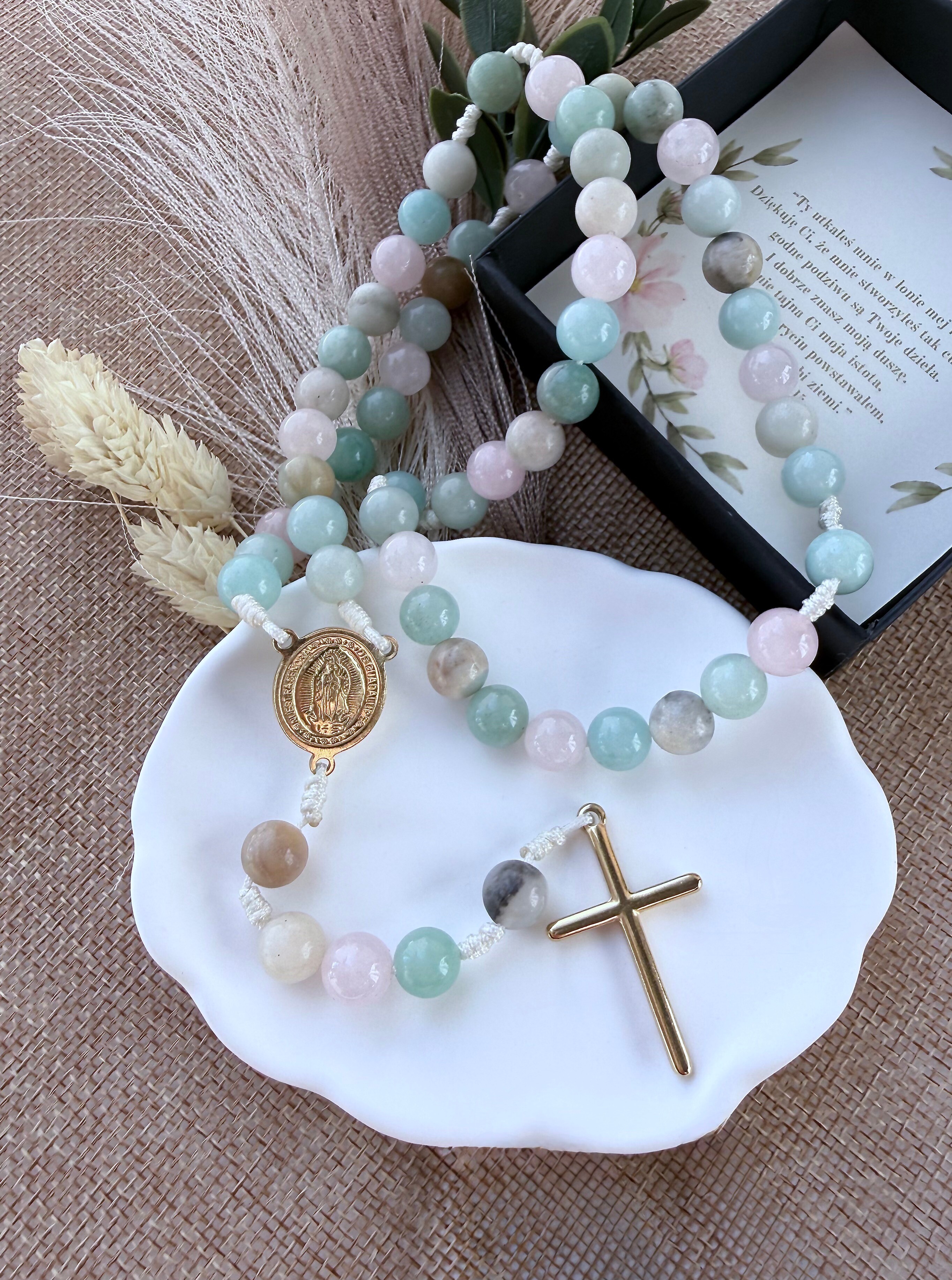 Unikalność natury: Każdy różaniec tworzę ręcznie specjalnie dla Ciebie. Ponieważ używam prawdziwych kamieni naturalnych, każdy egzemplarz jest absolutnie wyjątkowy. Kamienie mogą delikatnie różnić się odcieniem czy kształtem od tych widocznych na zdjęciach. To gwarancja, że otrzymujesz produkt jedyny w swoim rodzaju!