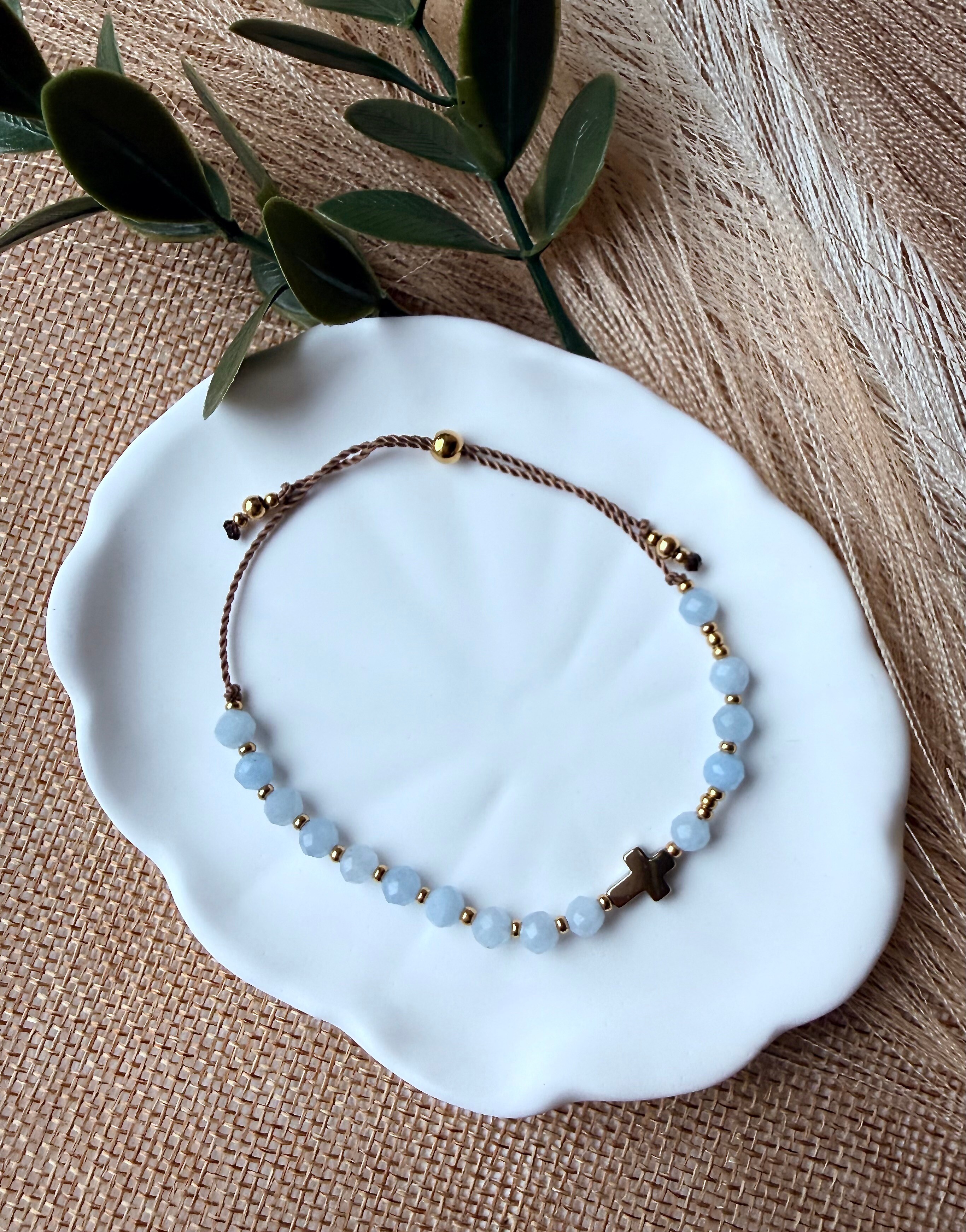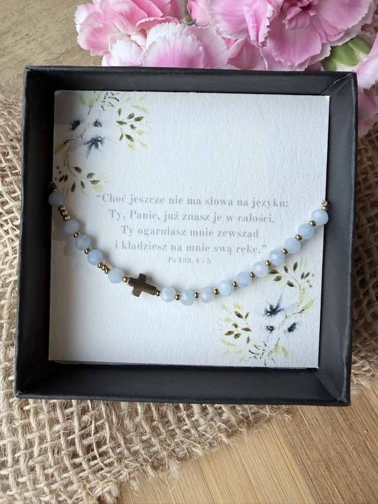 Ta bransoletka jest jak przypomnienie o potrzebie duchowego "obmycia" z codziennych trosk i zaufania Temu, który jest źródłem pokoju.